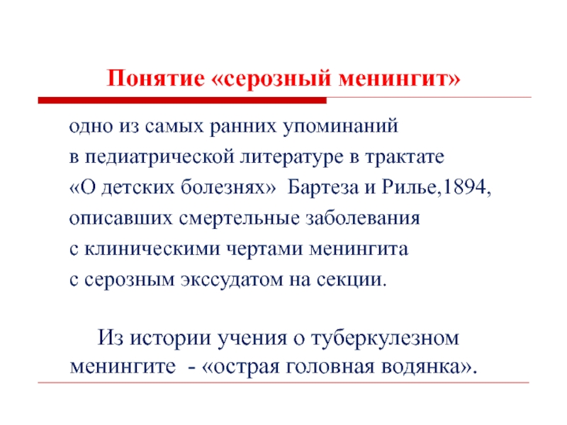 Из истории учения о туберкулезном менингите - «острая головная водянка».