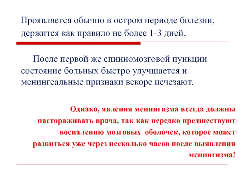 Слайд 10 Проявляется обычно в остром периоде болезни, держится как правило не