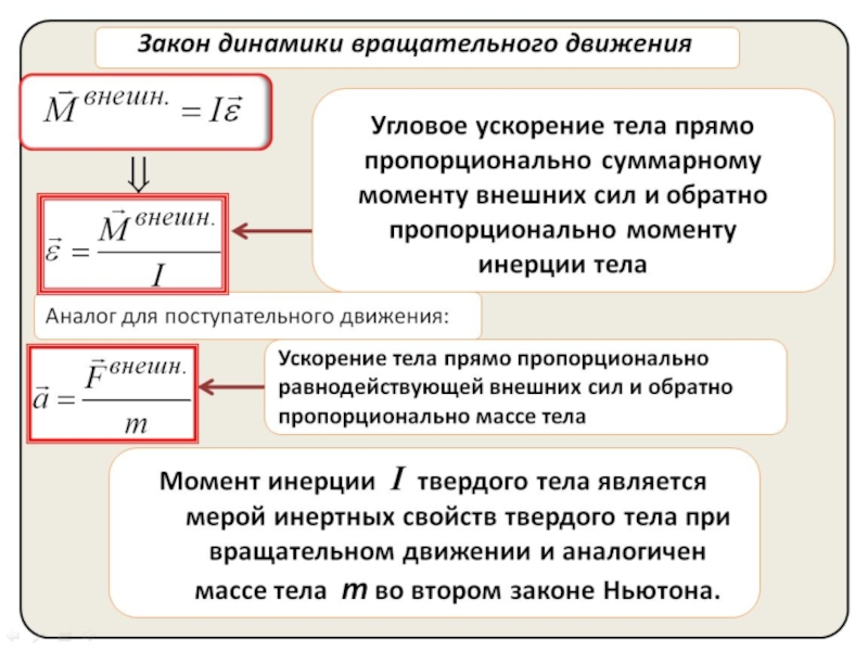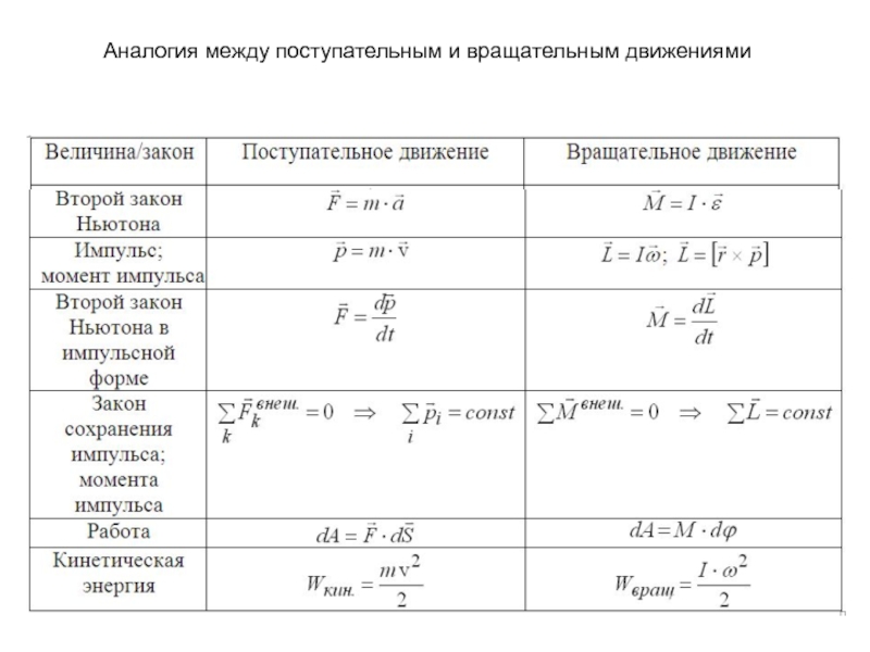 7. Сопоставление величин и законов для поступательного и вращательного движения