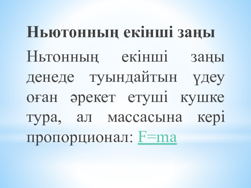 Ньютонның екінші заңыНьтонның екінші заңы денеде туындайтын үдеу оған әрекет етуші кушке тура, ал массасына кері пропорционал: