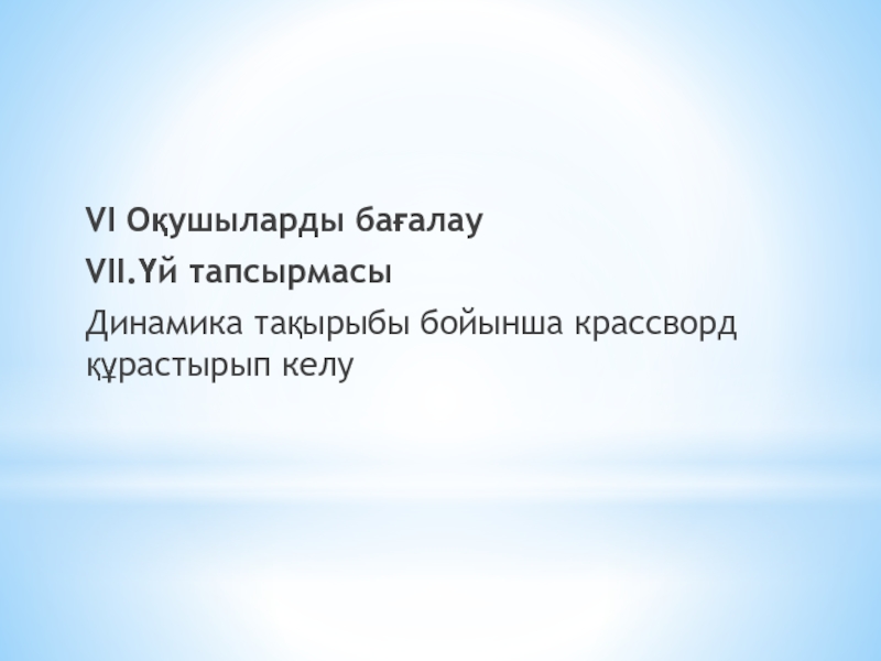 VI Оқушыларды бағалауVII.Үй тапсырмасыДинамика тақырыбы бойынша крассворд құрастырып келу