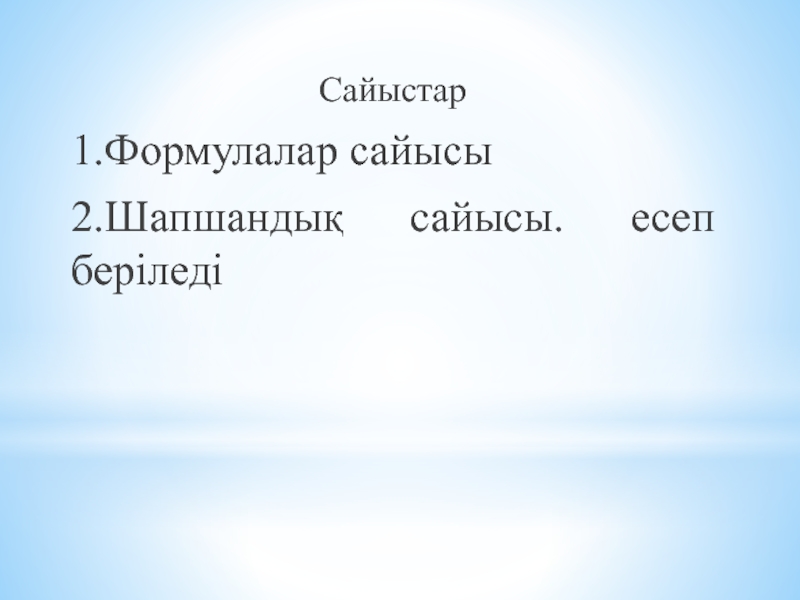 Сайыстар1.Формулалар сайысы2.Шапшандық сайысы. есеп беріледі
