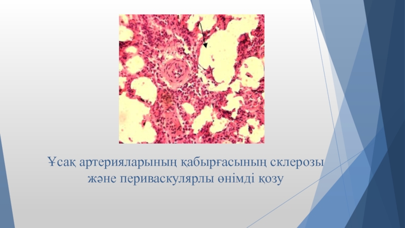 Слайд 15Ұсақ артерияларының қабырғасының склерозы және периваскулярлы өнімді қозу