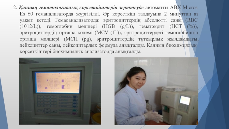 Слайд 82. Қанның гематологиялық көрсеткіштерін зерттеуде автоматты ABX Micros Es 60