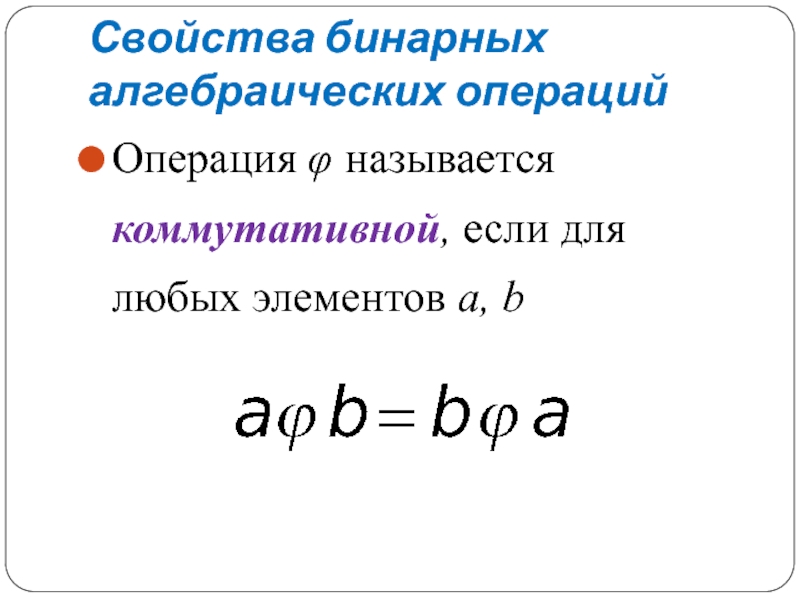Слайд 20Свойства бинарных алгебраических операций