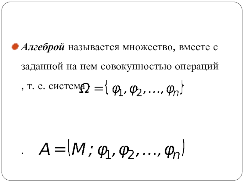 Слайд 3Алгеброй называется множество, вместе с заданной на нем совокупностью операций