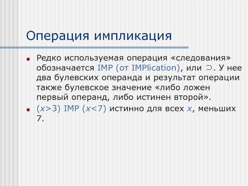 Редко используемая операция «следования» обозначается IMP (от IMPlication), или