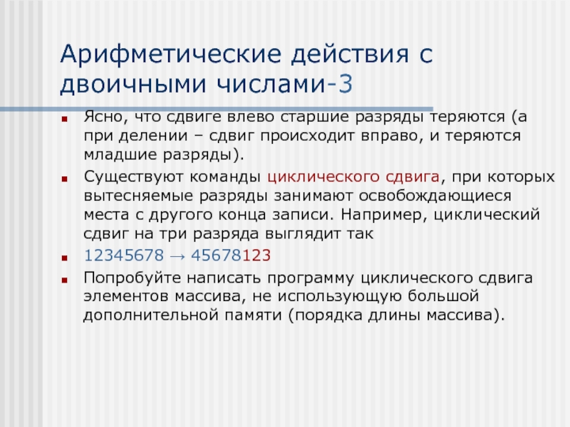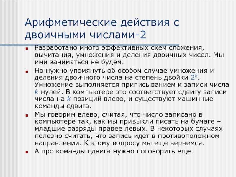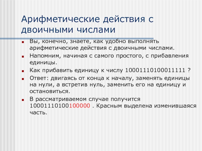 далее прибавлять о единице (работая прямо с двоичным набором, мы это уже умеем).