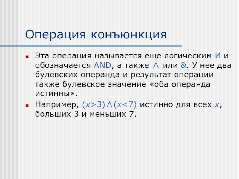 Например, (x>3)(x<7) истинно для всех x, больших 3 и меньших 7.