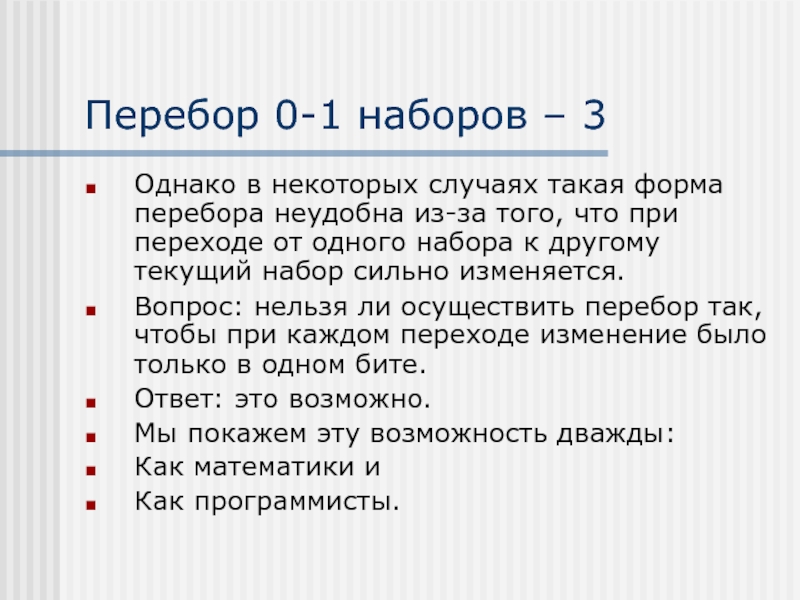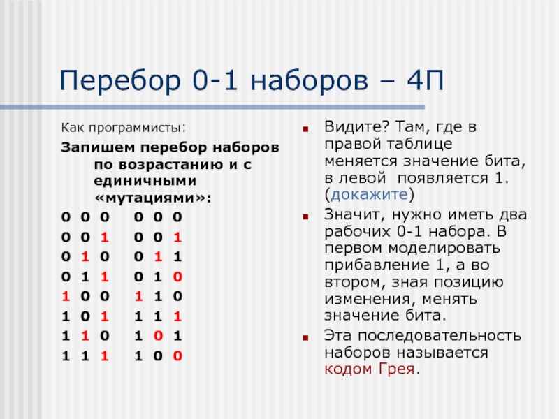 Вопрос: нельзя ли осуществить перебор так, чтобы при каждом переходе изменение было только в одном бите.
