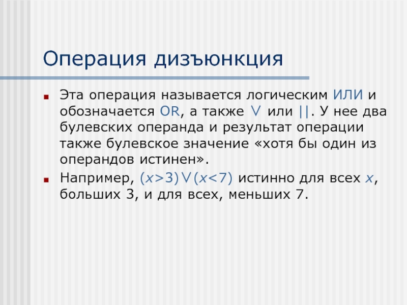 результат операции также булевское значение «хотя бы один из операндов истинен».