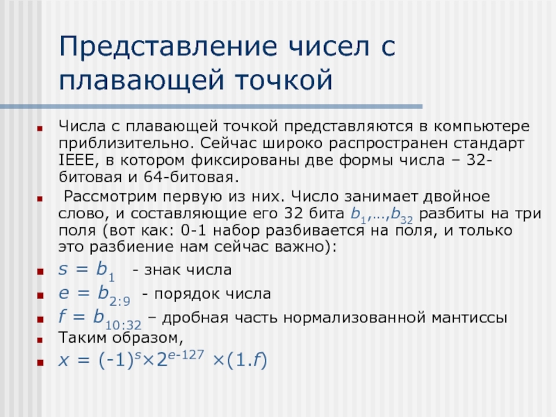 компьютере приблизительно. Сейчас широко распространен стандарт IEEE, в котором фиксированы