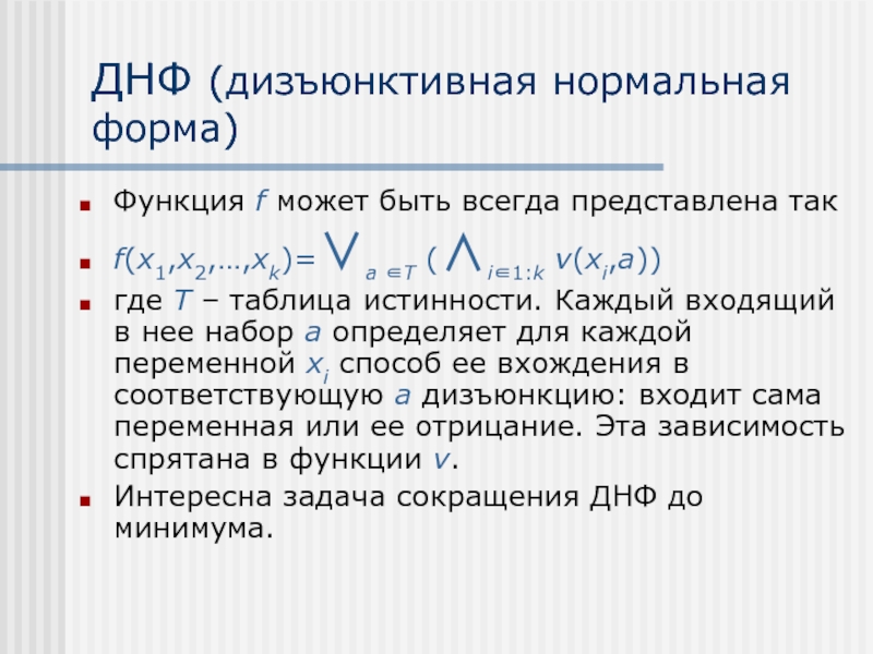 Слайд 17ДНФ (дизъюнктивная нормальная форма)
