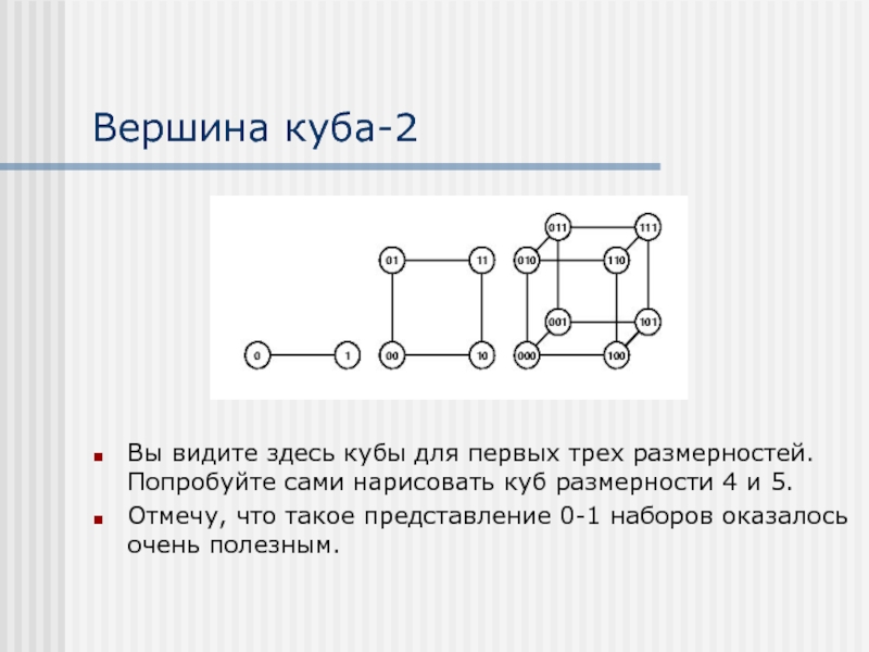 Вы видите здесь кубы для первых трех размерностей. Попробуйте