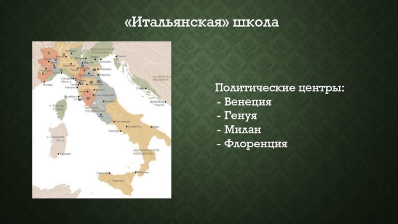 «Итальянская» школаПолитические центры:ВенецияГенуяМиланФлоренция
