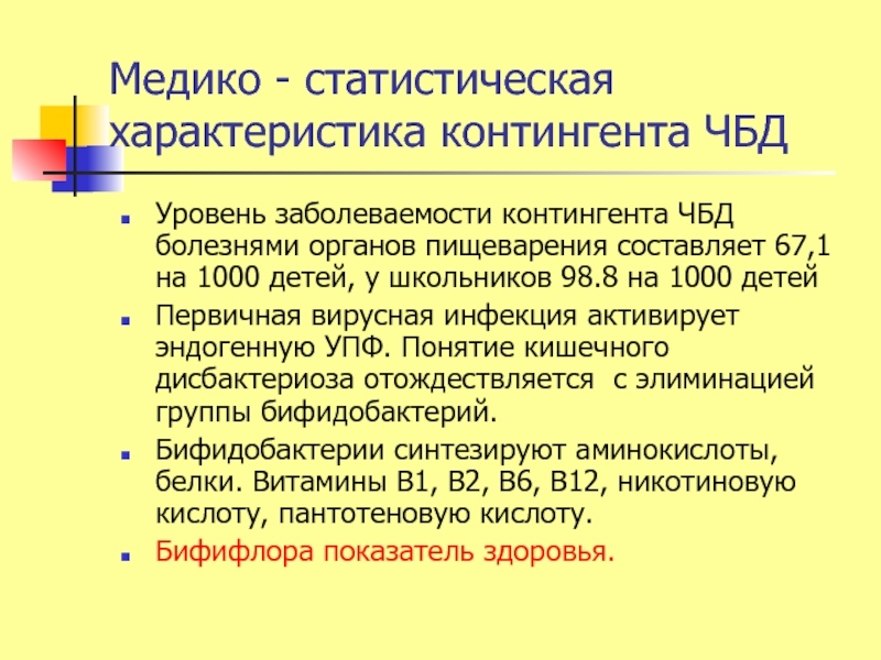 Слайд 16Медико - статистическая характеристика контингента ЧБД