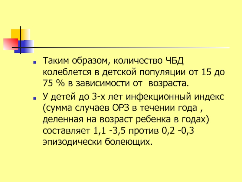 Уровень заболеваемости в пределах 6000- 7000 случаев на 1000 детей отмечается у ЧБД в первые 5 лет жизни.
