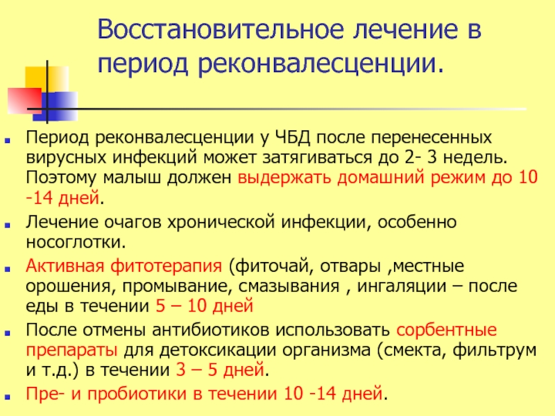 Слайд 46Восстановительное лечение в период реконвалесценции.