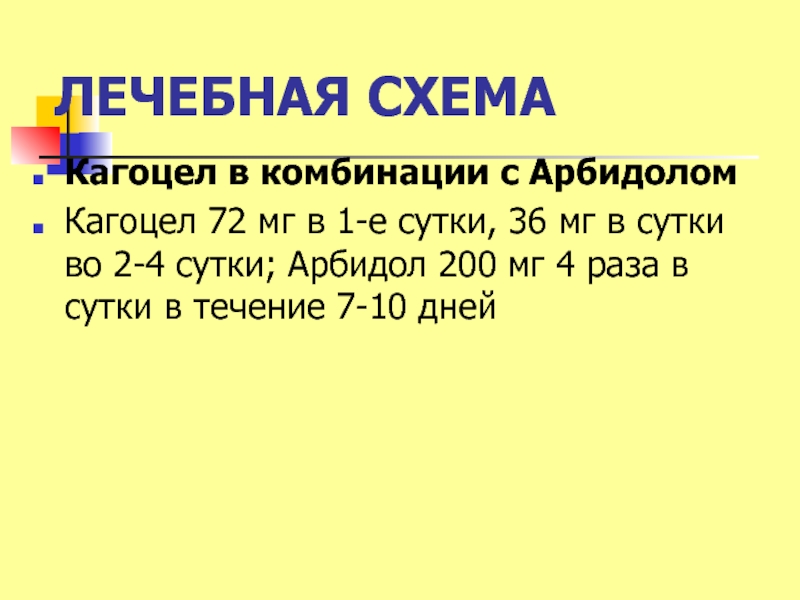 10-11 сутки; Арбидол по 200 мг ежедневно в течение 10-14 суток