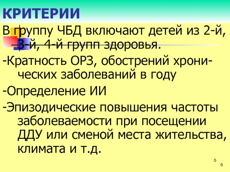Слайд 6В группу ЧБД включают детей из 2-й, 3-й, 4-й групп