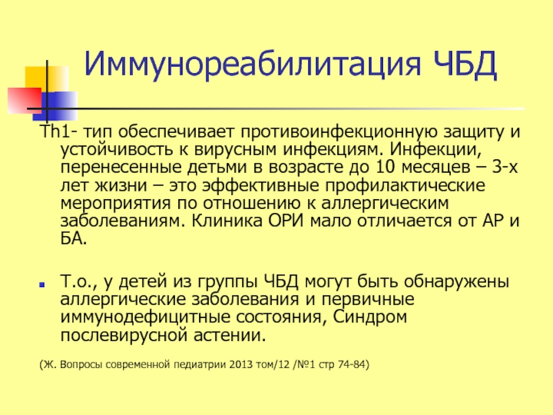 Слайд 2Часто болеющие дети (ЧБД) - не нозологическая форма и не