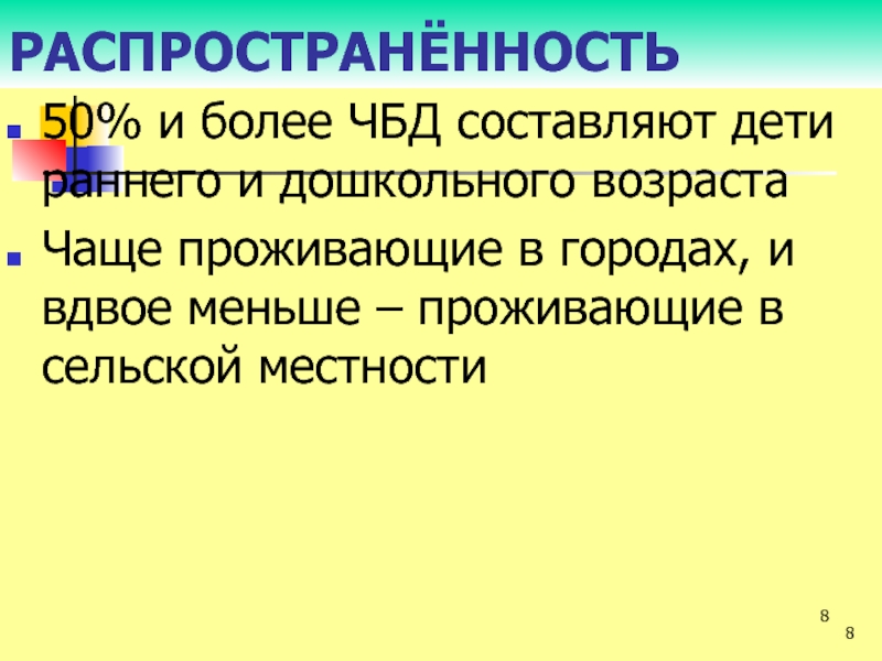 Слайд 850% и более ЧБД составляют дети раннего и дошкольного возраста