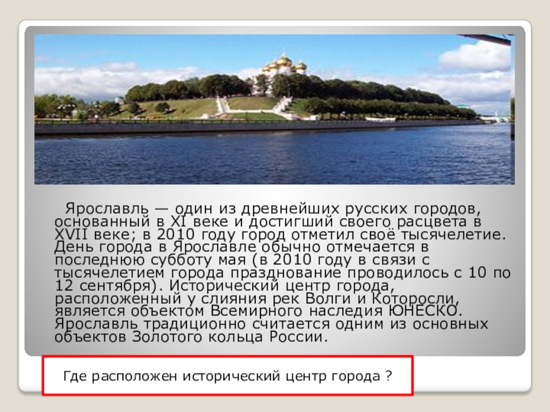 России. Города Золотого кольца: Ярославль, Кострома. Их достопримечательности.»