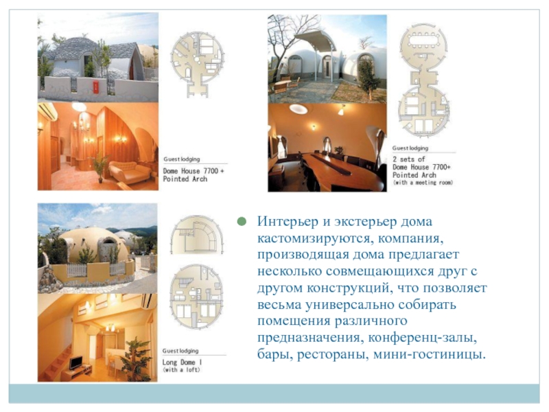 Слайд 38Интерьер и экстерьер дома кастомизируются, компания, производящая дома предлагает несколько