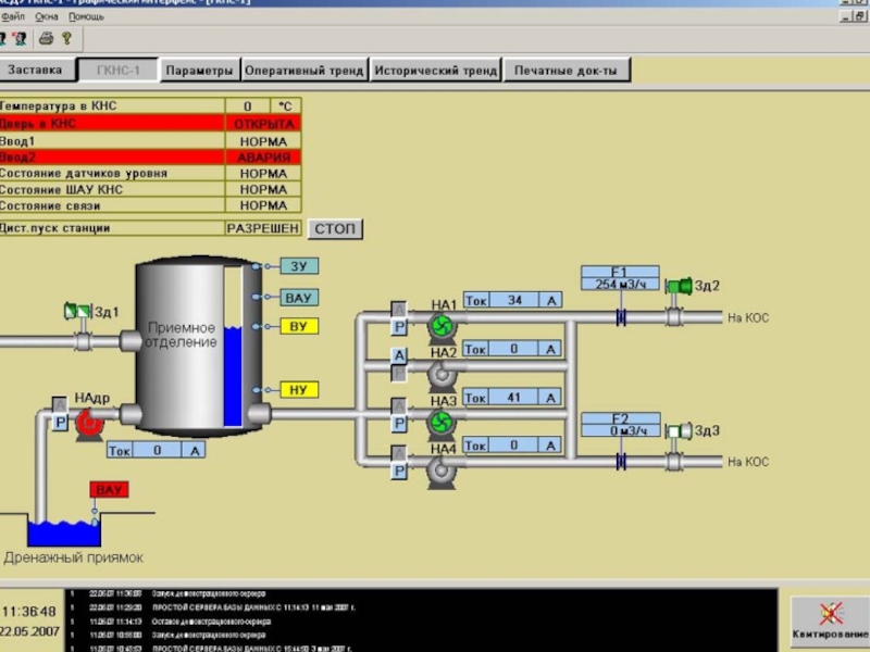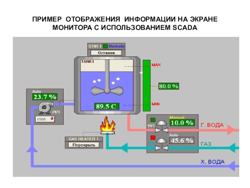 Слайд 37ПРИМЕР ОТОБРАЖЕНИЯ ИНФОРМАЦИИ НА ЭКРАНЕ МОНИТОРА С ИСПОЛЬЗОВАНИЕМ SCADA