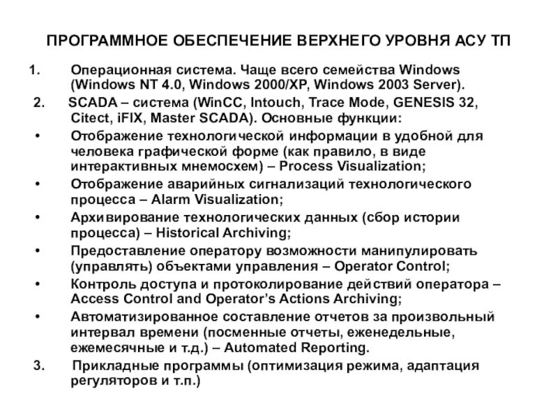 Слайд 36ПРОГРАММНОЕ ОБЕСПЕЧЕНИЕ ВЕРХНЕГО УРОВНЯ АСУ ТП