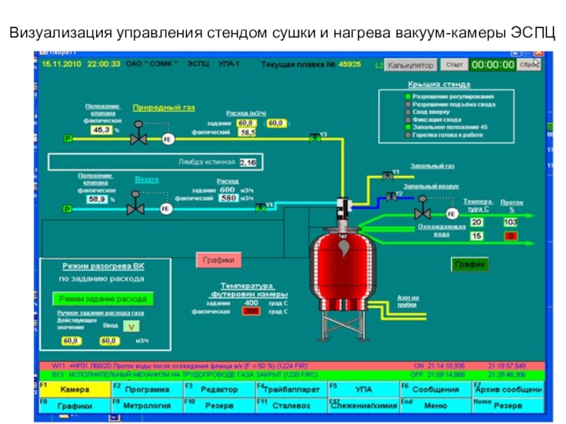 Слайд 39Визуализация управления стендом сушки и нагрева вакуум-камеры ЭСПЦ