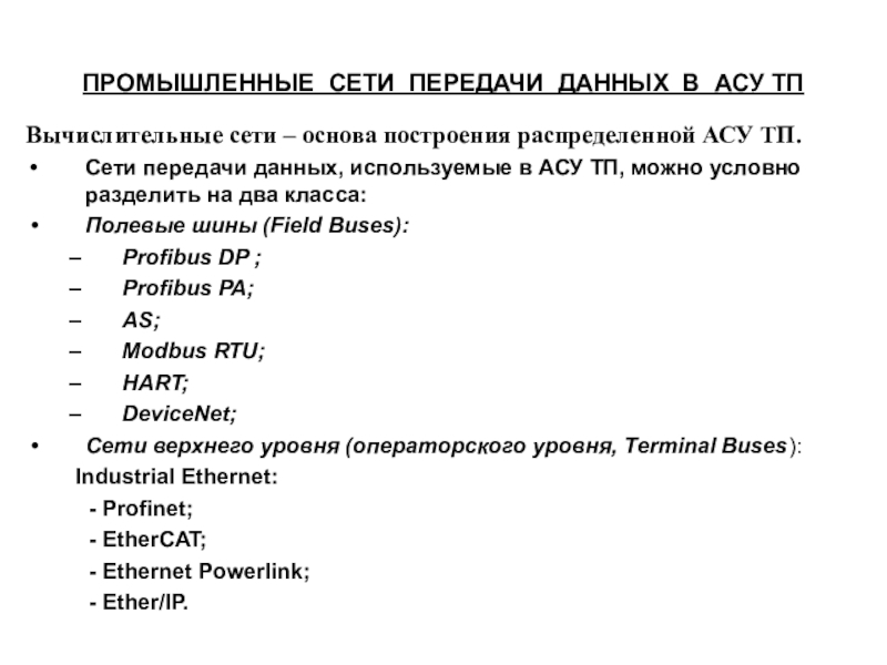 Слайд 40ПРОМЫШЛЕННЫЕ СЕТИ ПЕРЕДАЧИ ДАННЫХ В АСУ ТП
