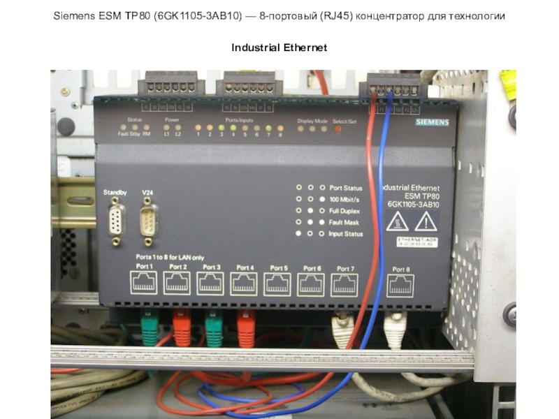 Слайд 46Siemens ESM TP80 (6GK1105-3AB10) — 8-портовый (RJ45) концентратор для технологии