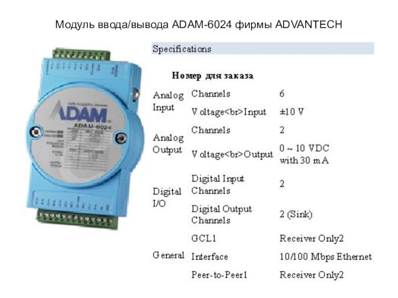 Слайд 14Модуль ввода/вывода ADAM-6024 фирмы ADVANTECH