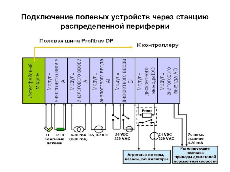 Слайд 11Подключение полевых устройств через станцию распределенной периферии