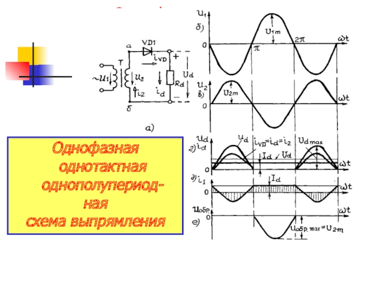 Электромагнитные процессы в однофазной однотактной однополупериодной схеме выпрямления.