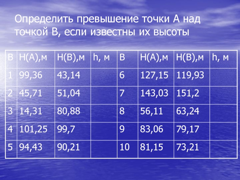 Слайд 12Определить превышение точки А над точкой В, если известны их