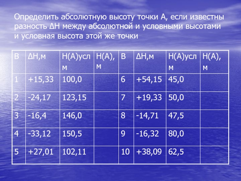Слайд 14Определить абсолютную высоту точки А, если известны разность ΔН между