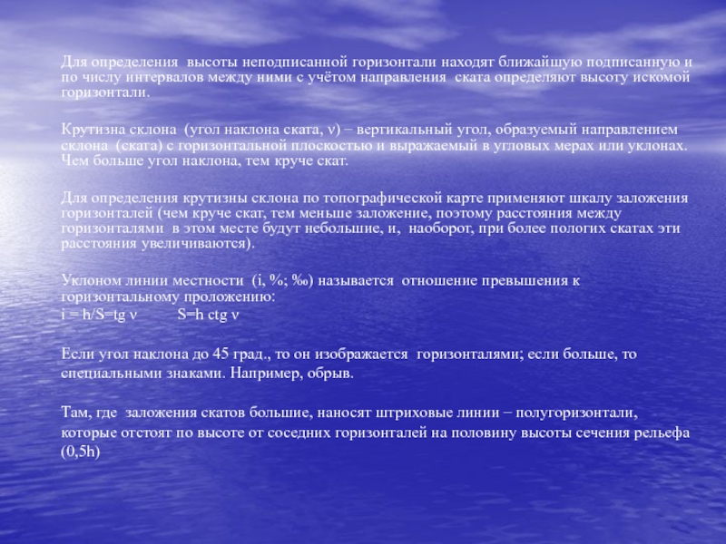 Для определения высоты неподписанной горизонтали находят ближайшую подписанную и по