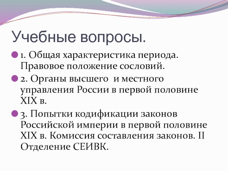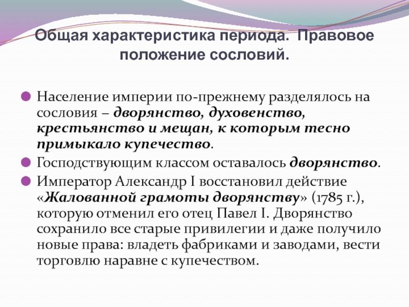 Слайд 3Общая характеристика периода. Правовое положение сословий.