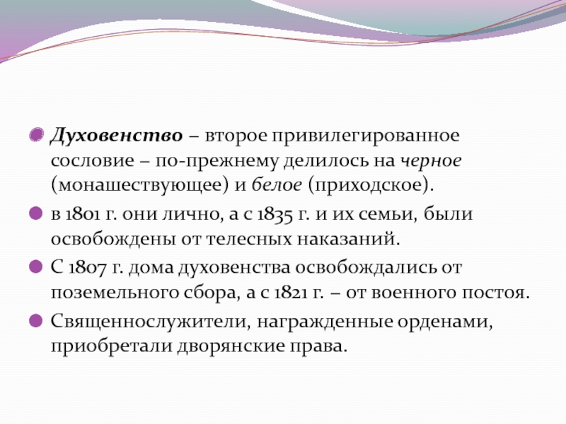Слайд 4Духовенство второе привилегированное сословие по-прежнему делилось на черное