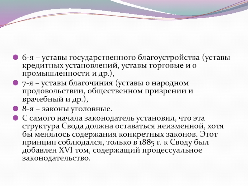 Слайд 336-я – уставы государственного благоустройства (уставы кредитных установлений, уставы торговые