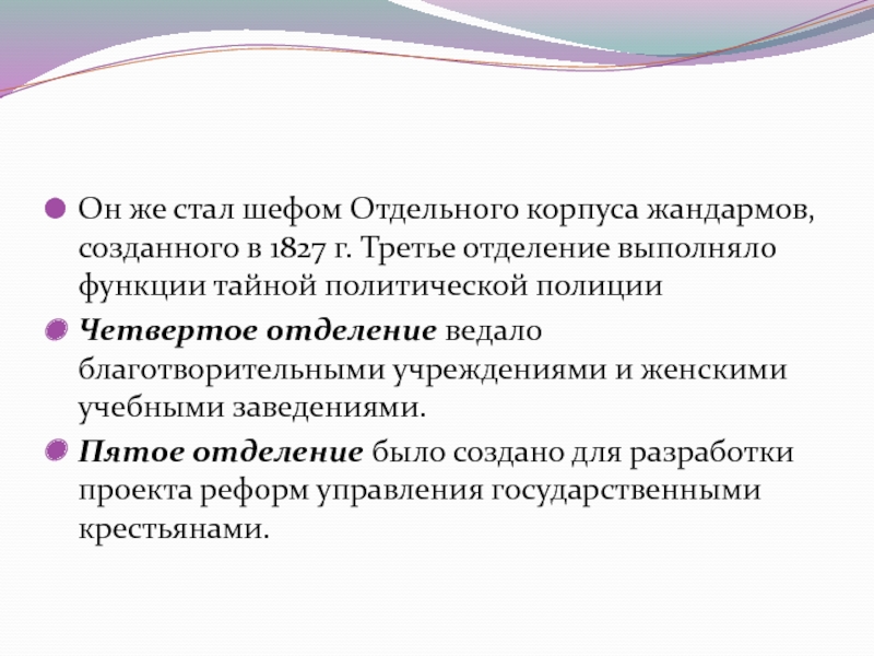 Слайд 28Он же стал шефом Отдельного корпуса жандармов, созданного в 1827