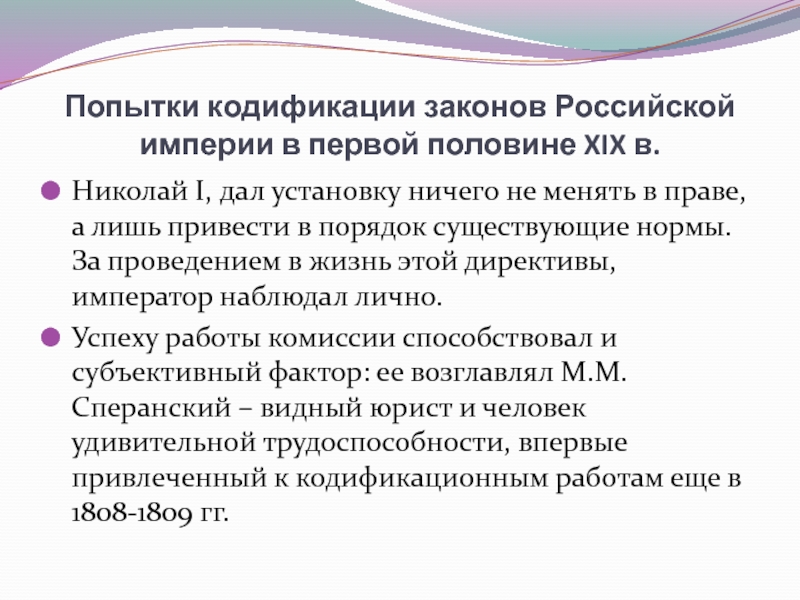 Слайд 29Попытки кодификации законов Российской империи в первой половине XIX в.