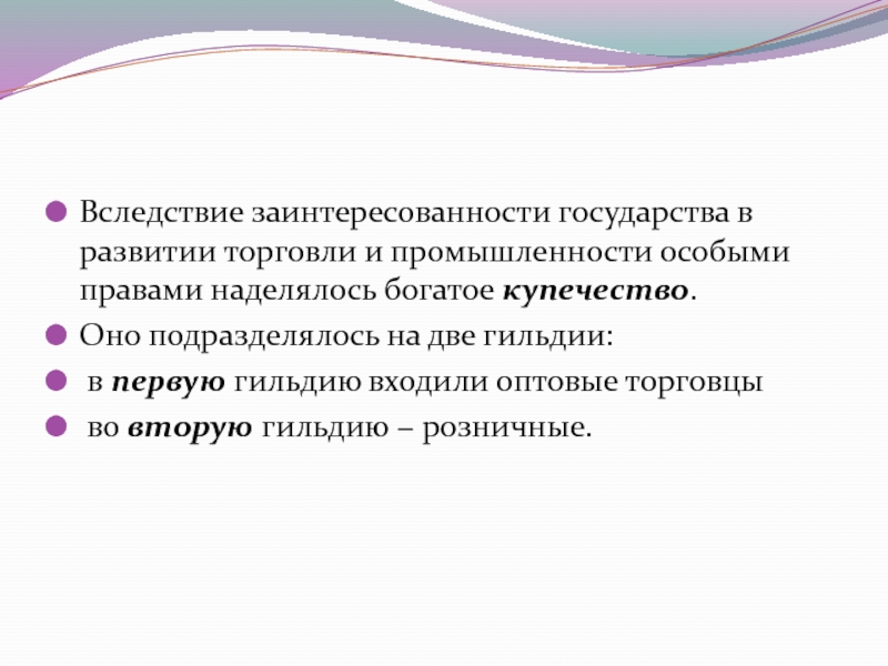 Слайд 13Вследствие заинтересованности государства в развитии торговли и промышленности особыми правами