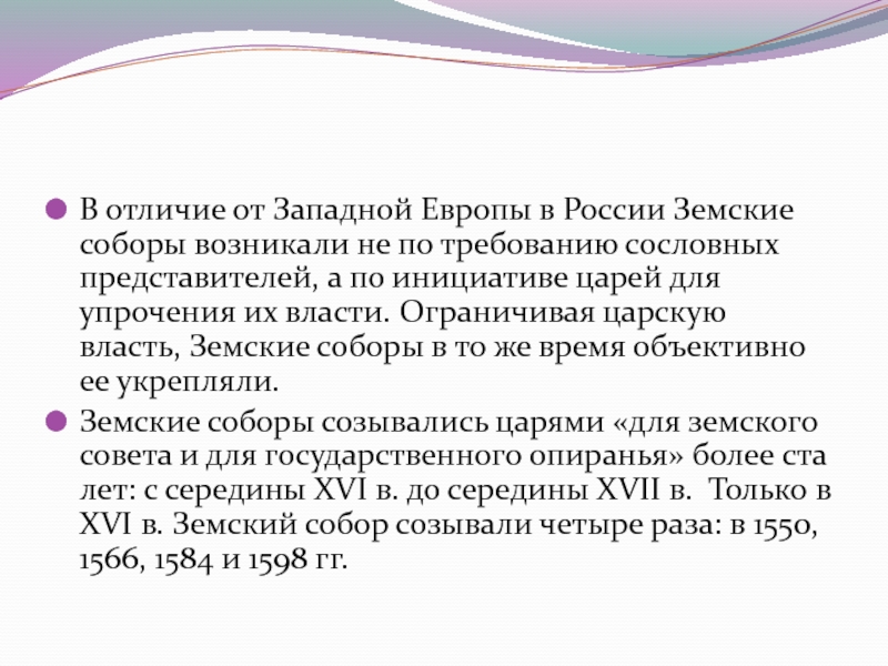 Слайд 23В отличие от Западной Европы в России Земские соборы возникали