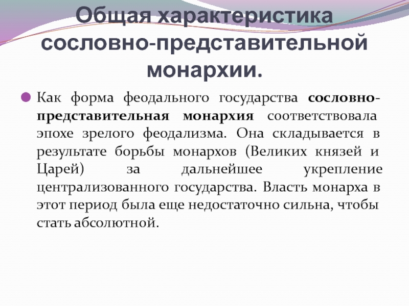 Слайд 3Общая характеристика сословно-представительной монархии.