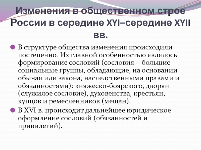 Изменения в общественном строе России в середине XYI–середине XYII вв.