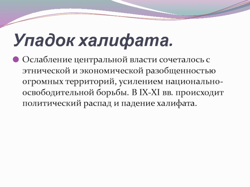 огромных территорий, усилением национально-освободительной борьбы. В IX-XI вв. происходит политический