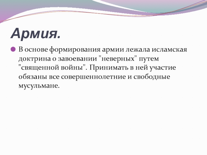 В основе формирования армии лежала исламская доктрина о завоевании "неверных"